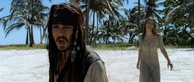 Jack sammen met Elizabeth Swann op een onbewoond eiland