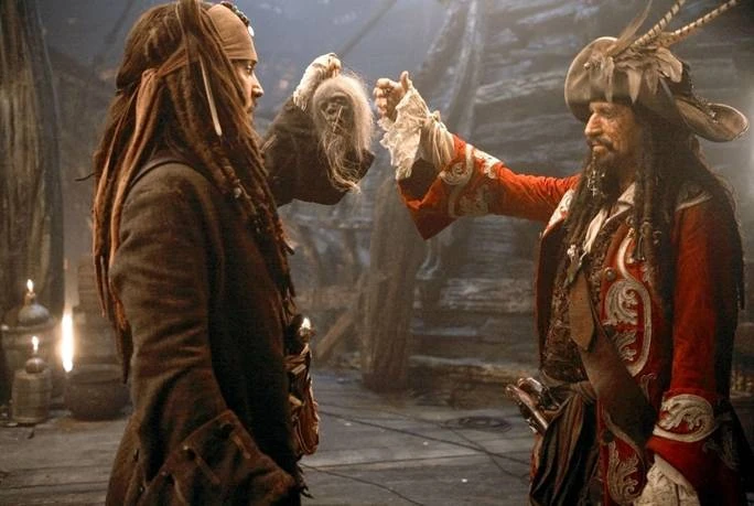bloedoffer en geeft de munt snel aan Will, en Barbossa richt zijn pistool naar Elizabeth die aan komt lopen. Hij is echter te laat, want hij wordt neergeschoten door Jack, met het pistool met die ene kogel die hij al 10 jaar voor Barbossa bewaard heeft. Barbossa vertelt hem dat hij die kogel alsnog heeft verspild, maar als Will het bloedoffer maakt die zijn vader nooit heeft kunnen doen, wordt de vloek weer opgeheven. De kogelwond begint te bloeden, en Barbossa zegt nog: ' I feel... Cold ' (ik voel... kou) en valt vervolgens neer. Jack vraagt of hij teruggebracht wordt naar zijn schip, maar hij ontdekt dat zijn schip er niet meer is, en hij terug naar Norrington moet, en vervolgens weer gearresteerd wordt. Als Jack bijna wordt opgehangen, bevrijdt Will hem, en laat hem ontsnappen samen met Elizabeth, Jack valt per ongeluk in het water, en ziet dat de Black Pearl aan komt varen, en wordt daarna opgehesen uit het water en is nu zelf de kapitein van de Pearl samen met de bemanning die daar nu bij hoort.