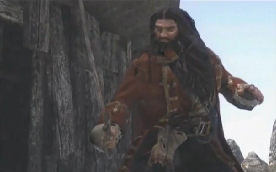 Jack Sparrow later encountered Black Bart in Davy Jones' Locker, after the former was taken there by the Kraken. Black Bart had imprisoned the Pirate Lord of the Atlantic Ocean, Gentlemen Jocard, who Jack Sparrow wanted at the Conclave at Shipwreck Cove. The two subsequently fought, and Roberts was defeated by Sparrow. After being stabbed by Sparrow, Roberts gave a maniacal laugh and then, simply disappeared, leaving only his boots and sword behind.[3]