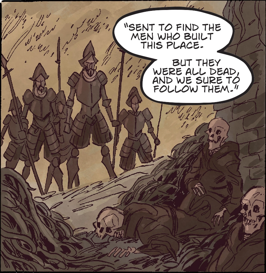 The conquistadors find the dead priests.