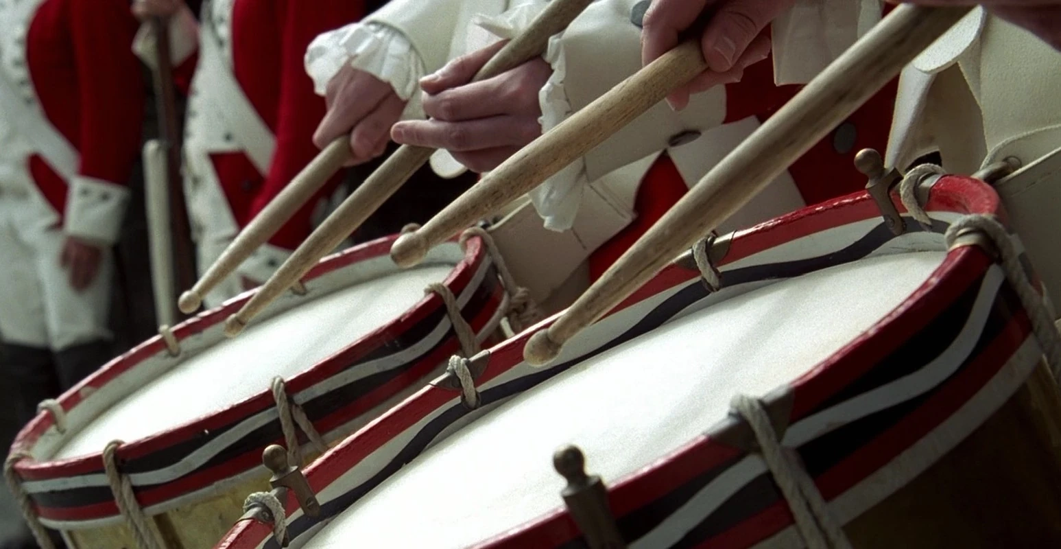 From high atop the cliff that overlooked Port Royal, Captain James Norrington's promotion ceremony at Fort Charles was a glittering military spectacle, with pipes and drums playing as sailors and marines marched in perfect formation.[1][2] Drums continued playing as Norrington entered the courtyard, where he was promoted to commodore of the British Royal Navy. The sound of drums filled the air later during Jack Sparrow's hanging, and the Town Clerk listed Sparrow's crimes and his death sentence at Fort Charles, with a drumroll being played before Will Turner dashed to Sparrow's rescue.[3][4]