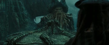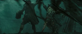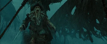 | During the battle of Calypso's maelstrom, Jack steals the Dead Man's Chest from the captain's cabin of the Flying Dutchman. Meanwhile, Davy Jones killed Mercer, the current holder of the key to the chest. He then takes the key and sets out to reclaim his heart. However, Jones spots Jack with the chest, and attempted to take it from him. Jack then "flys" up to the Dutchman's rigging, where he would meet with Jones, who teleported there. There, a duel all over the Dutchman ensues. | Jack soon got knocked down by Jones, who then confronted Elizabeth Swann and Will Turner. It was then that Jack was able to unlock the chest and planned to stab Jones' heart to achieve immortality. Jones then stabbed Will in the heart, after which Bootstrap Bill Turner attacks Jones. Jack then helps Will stab Jones' heart. Jones died and fell into the maelstrom. Shortly afterwards, Will became the new captain of Flying Dutchman. |