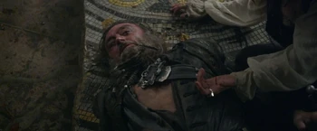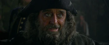 With the help of Jack Sparrow, Blackbeard and his crew arrive to the Fountain of Youth for a chance of immortality. Barbossa arrived with his crew shortly after to confront Blackbeard for his crimes, particularly for the loss of his leg. Pulling out their swords, Barbossa and Blackbeard ordered their crews to attack. After Jack Sparrow briefly interrupted the fight, asking the sense of all crewmen to fight when the matter mostly concerned the captains, the battle ensued as Barbossa dueled with Blackbeard.----Scrum and Angelica would bring the Chalices and a mermaid's tear for the ritual of the Fountain. However, they would be interrupted by Jack Sparrow, who would want both items. | Blackbeard was soon able to trip Barbossa and prepared to strike him down, but not before the Spanish arrived to destroy the Fountain. After confronting The Spaniard, Blackbeard was run through by Barbossa with his sword, poisoned by the innards of poison dart frogs. Barbossa claimed Blackbeard's sword, along with his ship and crew, as payment for his missing leg. Blackbeard died immediately after performing the Profane Ritual, where he was tricked by Jack Sparrow. |