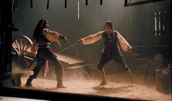 Unlike many other pirate-themed movies in which all naval and pirate officers dueled with rapiers and used thrusting strikes only, the Pirates of the Caribbean movies gave a realistic depiction of pirate weapons and sword-fighting techniques.