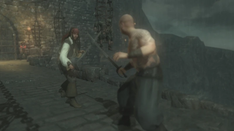 Jack, after freeing several prisoners, faced off against Warder, the captain of the guards and Mordillah, the warden. With both men subdued, Jack found the drawing of the Key to the Dead Man's Chest. Sneaking away in a floating coffin, Jack Sparrow made it back to his ship, the Black Pearl.