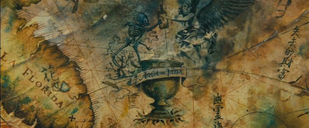 Because a drawing of Florida appeared in the map featured in At World's End, many fans believed that Florida would appear as the location of the Fountain of Youth in On Stranger Tides. This was speculated due to the real-world myth of Florida being a notable location of Ponce de León's search for the Fountain, as well as Florida's appearance in Tim Powers' novel of the same name that was used for the film. However, the fourth Pirates film revealed that a unnamed Caribbean island was the true location of the Fountain.