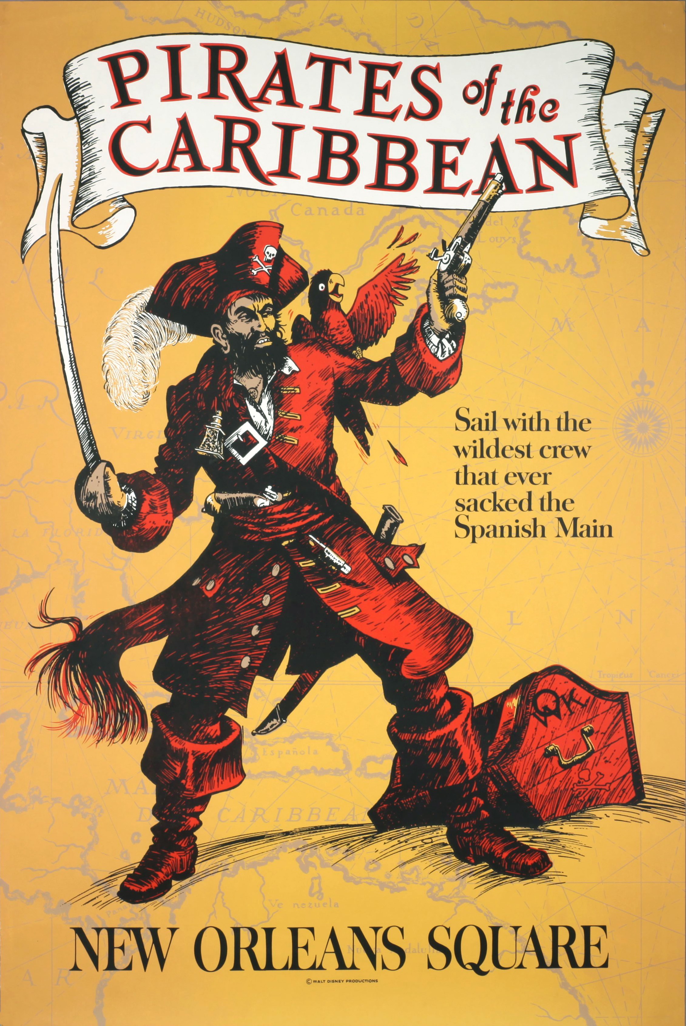 The Pirates of the Caribbean attraction poster, designed by Marc Davis.