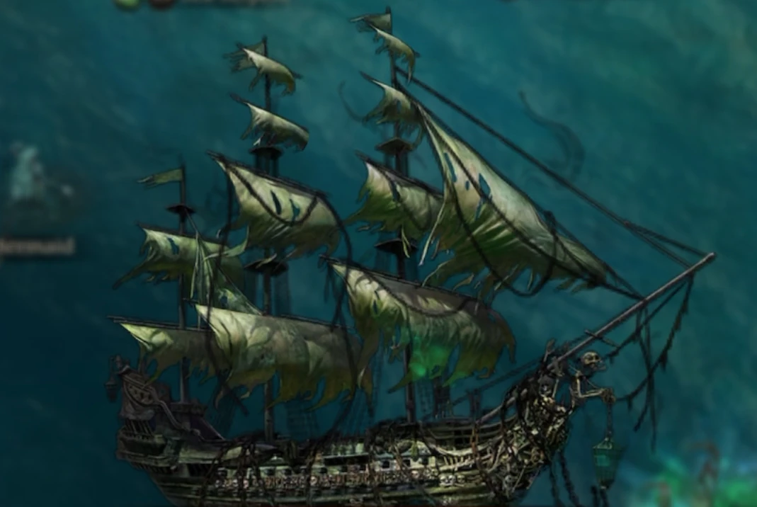 The Flying Dutchman, a ghost ship well-known to be captained by the cursed Davy Jones.