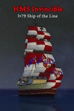The HMS Invicible was a powerful ship of the line in service of the British Royal Navy. It was assigned to lead the various Treasure Fleets going through the Caribbean. Her armament included firebrand cannons and explosive broadsides. It can be easily distinguished from other ships due to the treasure fleet logo on its sails.