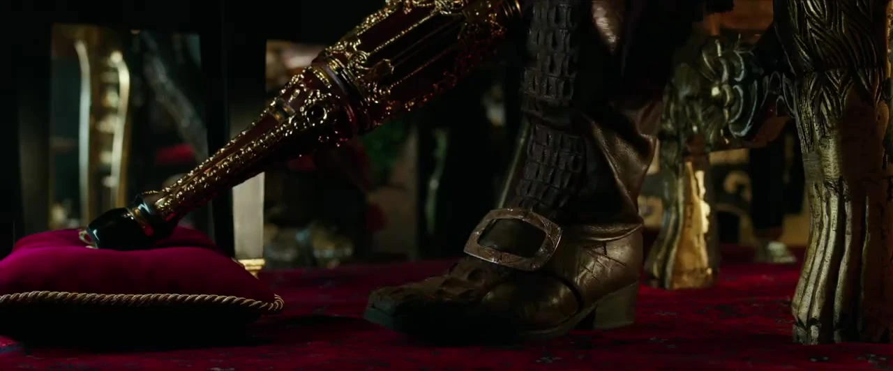 This peg leg was Hector Barbossa's replacement for the limb that was lost during Blackbeard's attack on the Black Pearl. Given to him during his time as a privateer, Barbossa's first peg leg was a removable wooden leg which contained a hidden rum supply. With the leg, Barbossa also carried a crutch, to help him keep balance while walking. Although the crutch was broken during the battle at the Fountain of Youth, Barbossa would continue wearing the peg leg as he returned to piracy as captain of the Queen Anne's Revenge. A year later, Barbossa obtained another peg leg, this one made of gold and encrusted with jewels.