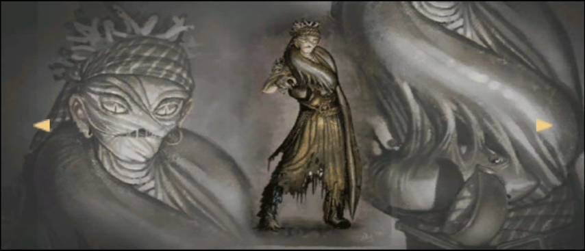 Early concept art for Morey for the At World's End video game, depicted here as a woman.