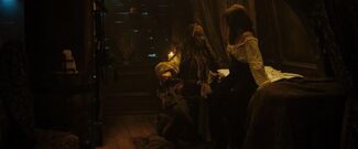 After Blackbeard made an example by unleashing Greek fire on the Cook, who was on watch that night, Jack was brought into Blackbeard's cabin for a talk. Despite Jack's attempt to warn Blackbeard of his First Mate Angelica, claiming that she was conning him, Blackbeard himself made a voodoo doll resembling Jack. Angelica entered the cabin as Blackbeard started using the doll to manipulate Jack, in which Blackbeard was able to force Jack into helping him in his quest for the Fountain.[1]