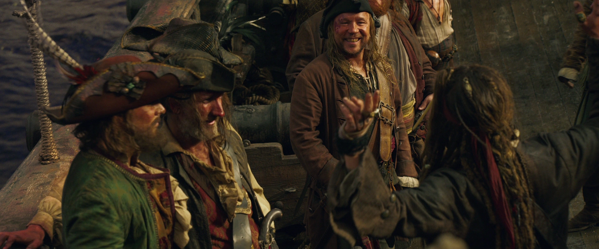 - "I claim Blackbeard's ship and crew and this sword payment for me missing limb."