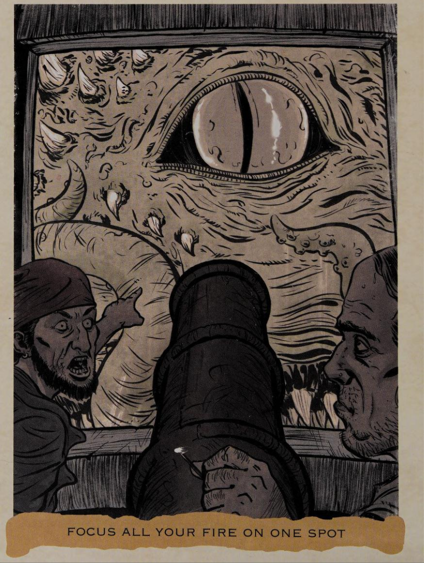 A sea monster attacks a ship.