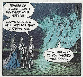 The Buccaneer's Heart! is a comic published in Disney Adventures in 2004, notable for featuring the "spirits of the pirates of the Caribbean" with Jack Sparrow.[1] However, the comic is considered non-canon due to the "spirits" appearing as still-living characters, as fated in later releases of various media: