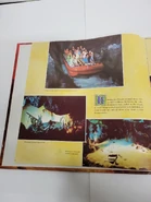 Around the bend in Frontierland is the most exciting "Audio-Animatronics" adventure, "Pirates of the Caribbean," a voyage you'll never forget! We board our bateau in the Blue Bayou to begin our journey to the Spanish Main. Soon we splash down waterfalls into an eerie cavern where we know dangers lie ahead. We pass Dead Man's Cove, a cave's eye view of a hurricane and the crew's quarters. Then, in the elegant "apartment" for the captain, a ghostly version of the pirates theme song — YO HO (A Pirate's Life for Me) is heard coming from a player-less organ. We pass through a glittering treasure cache and move right into a battle between a pirate ship and the fortress. As cannon balls whistle over our heads we move on to our first village. There pirates terrorize the citizens, burning and looting the city; and as they carry off their "booty" we hear the bloodthirsty pirates harmonizing on YO HO, the pirate's song. We escape the flames of the burning town by gliding into a tunnel beneath burning timbers. The fire creeps closer, adding to our danger; the pirates are target shooting at rum kegs which actually contain explosives. How do we escape from this terrifying situation? Through the magic of Walt Disney's "Audio-Animatronics" we "fall up" a waterfall and "presto" we are soon safely back in the Enchanted Blue Bayou.