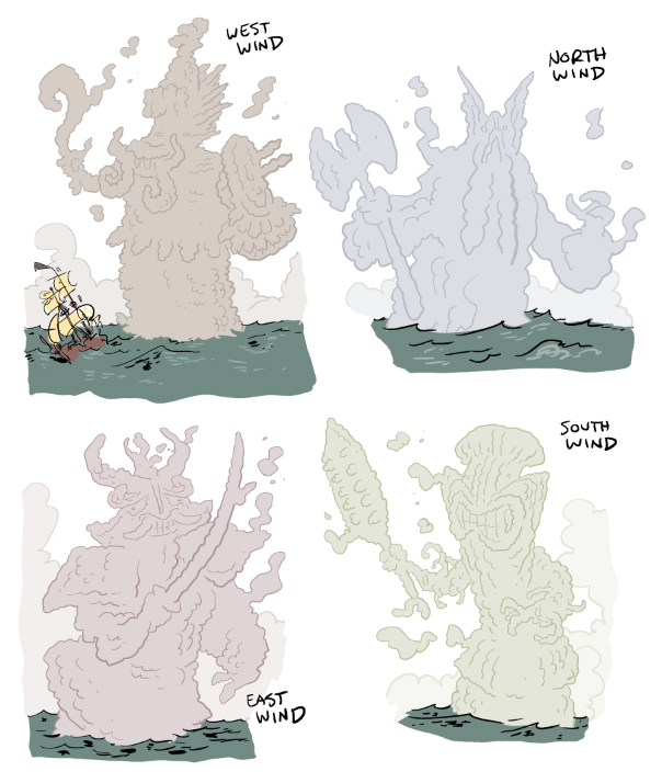 Chris Schweizer's early design of the four winds summoned by the Weather Gauge.